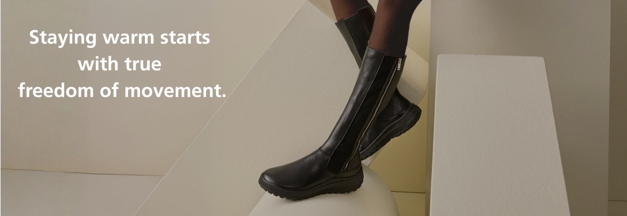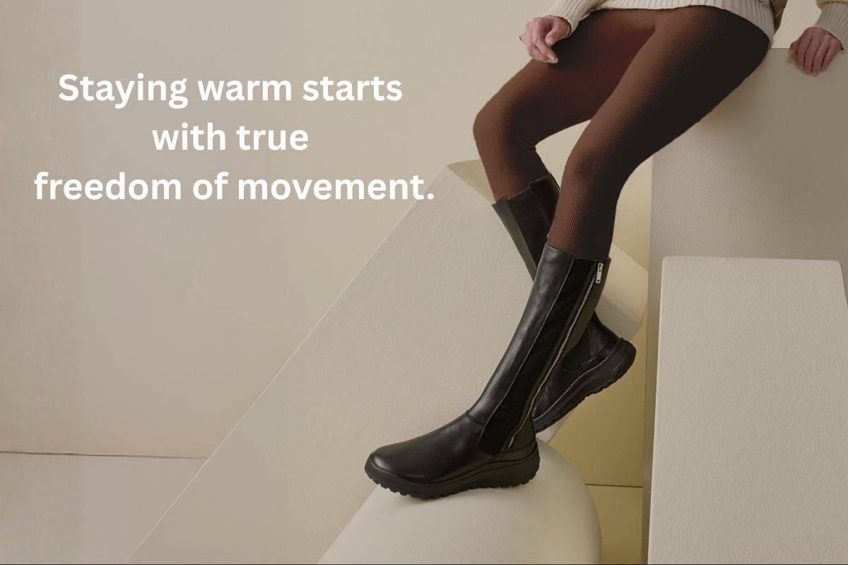 Many conventional shoes restrict foot function. But active movement is particularly important when the muscles are stressed by cold temperatures.